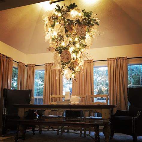 Hanging Christmas Tree From Ceiling - Drill the piece of wood into your ceiling. Web an upside down christmas tree is exactly what it sounds like: The top of the tree faces the floor and the bottom faces the ceiling. Web a simple drywall screw that supports up to 45 pounds will allow you to hang your tree any place you want versus needing to hang.
